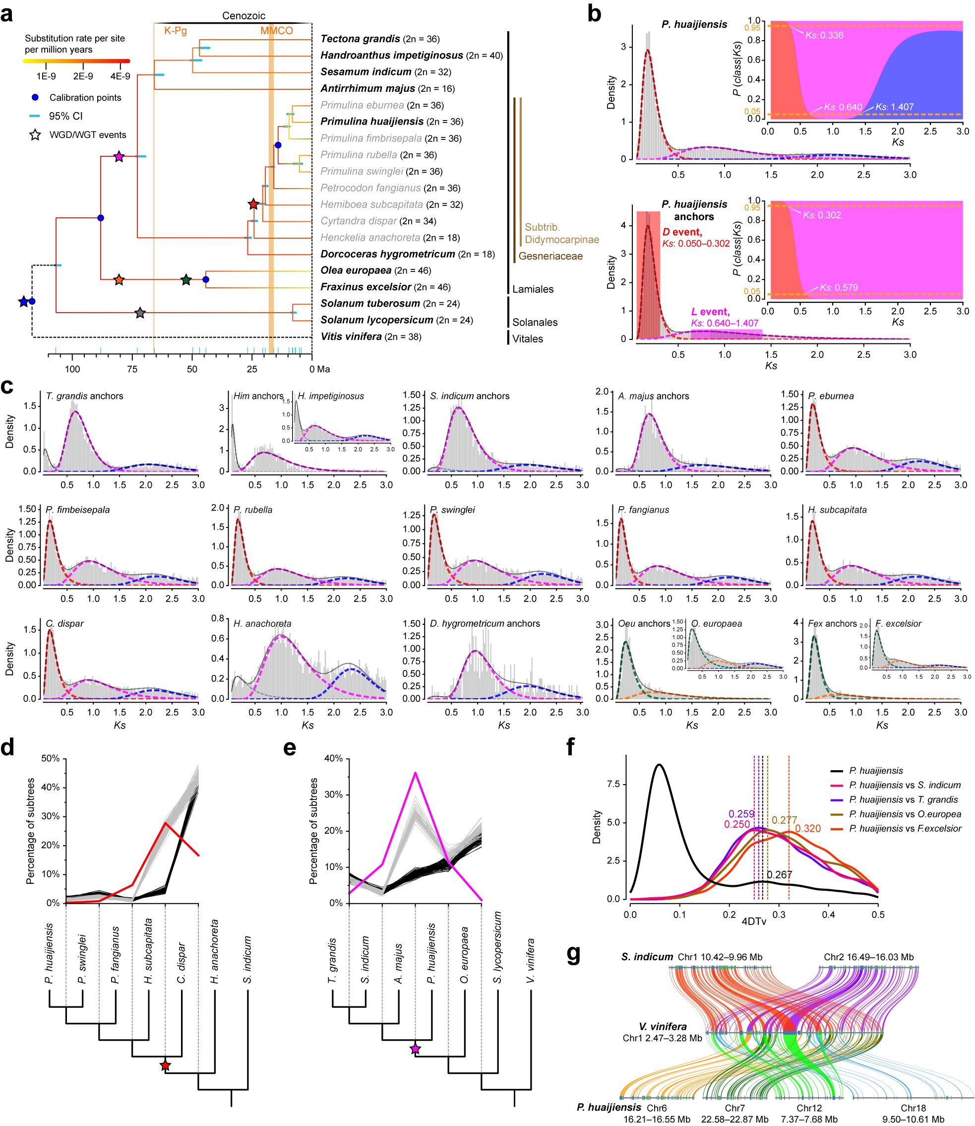 圖1. 懷集報春苣苔經歷了2次近期的全基因組復制事件