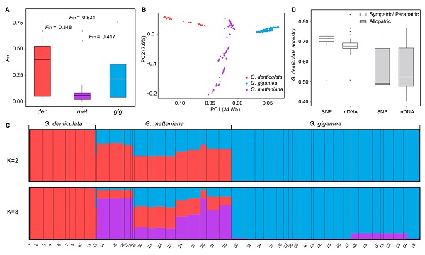 小黑桫欏(G. metteniana)與其親本大葉黑桫欏(G. gigantea)和粗齒桫欏(G. denticulata)的遺傳分化