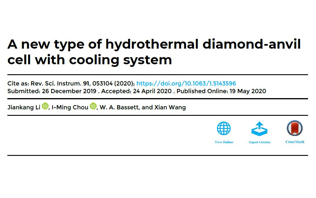 近日,深海極端環境模擬研究實驗室周義明研究員作為共同作者在《Review of Scientific Instruments》上發表了題為“A new type of hydrothermal diamond-anvil cell with cooling system”的文章。該研究在熱液金剛石壓腔冷卻系統方面有了新的進展。