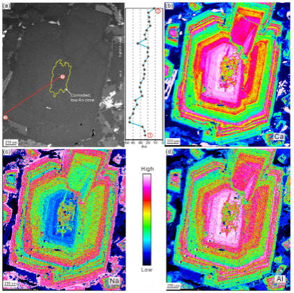 圖1 具有異常低An溶蝕核的斜長石晶體,溶蝕核為深部貧水儲庫中結晶