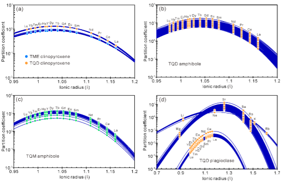 圖3 依據礦物晶格應力模型反算的礦物分配系數(Onuma圖解)