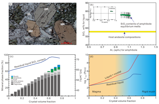 結晶分異的物理過程是使已結晶的礦物相與殘余熔體有效分離,這一過程在熱的下地殼巖漿儲庫中十分普遍。但是,在冷的上地殼,中酸性的巖漿儲庫能否有效發生晶體-熔體分離過程,存在非常大的爭論。爭論的核心是時間問題,即中酸性巖漿儲庫中早期結晶的礦物相與高粘度的殘余熔體具有較小的密度差,這使得晶體沉降或者壓實引起的殘余熔體驅離十分緩慢,而同時巖漿儲庫在冷的上地殼中具有非常快的冷卻速率和短的熱壽命。因此,部分學者主張,在上地殼的巖漿儲庫中,難以發生有效的晶體-熔體分離過程。但野外觀察到的很多地質現象卻支持晶體-熔體分離過程在淺部巖漿儲庫中是可行的。例如,國際上研究程度非常高的貧晶體高硅流紋巖,其噴發往往伴隨大規模的地表塌陷(破火山口),這顯然是近地表巖漿儲庫發生殘余熔體匯聚以及抽取的結果。但作為高硅流紋巖的對應的侵入巖,普遍認可的高分異成因的實例依然較少,亟需實例來驗證。