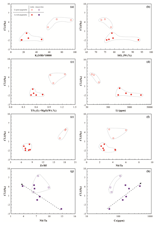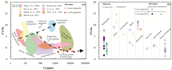 圖1 白龍山偉晶巖全巖及礦物Li同位素組成
