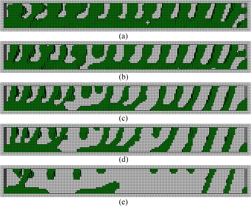 基于雙向漸進拓撲結構優化法的 SPBAs 形態學計算的拓撲結構的演化過程示例