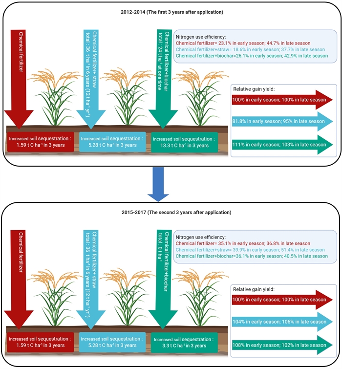 全量秸稈還田及低量生物質炭施用下6年中土壤碳固持、水稻產量及氮肥利用率變化