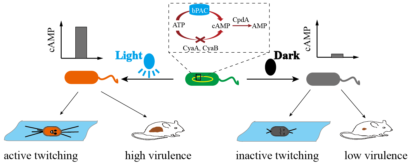 圖二:通過光照控制細菌對小鼠的感染力