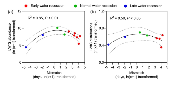 物候錯(cuò)配對東洞庭湖小白額雁(a)數(shù)量和(b)分布模式的影響