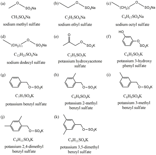 圖1. 十一種代表性有機硫酸酯的化學式