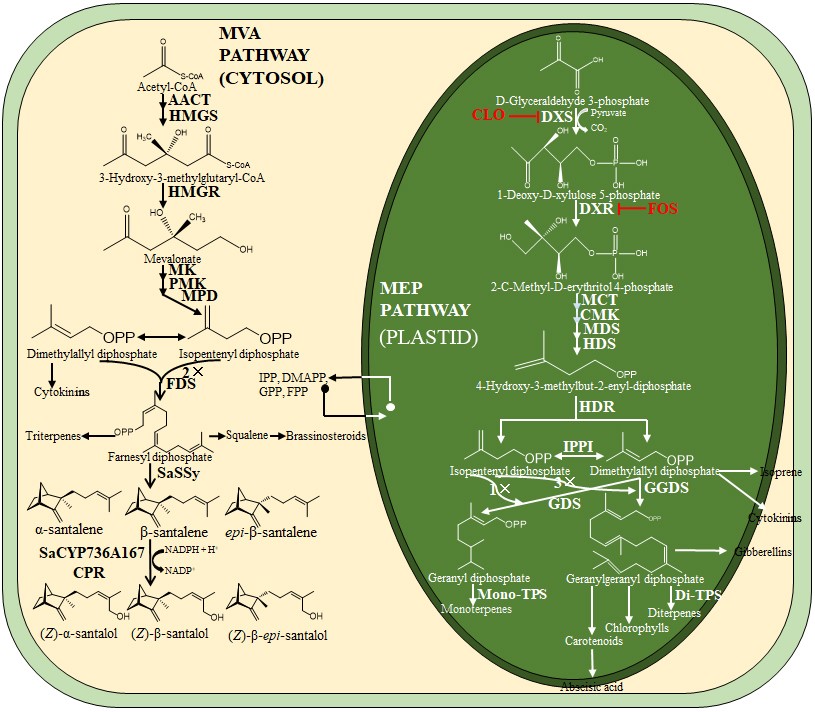 (4) (2021) Cloning, characterization, and functional analysis of acetyl-CoA C-acetyltransferase and 3-hydroxy-3-methylglutaryl-CoA synthase genes in Santalum album. Scientific Reports 11:1082. https://doi.org/10.1038/s41598-020-80268-3