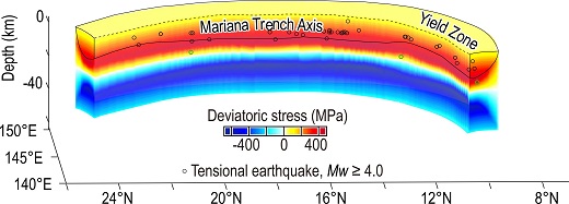 本研究揭示了馬里亞納俯沖板塊的三維破裂帶的空間分布特征,指出了俯沖帶巖石圈三維撓曲過程的重要性,模型可推廣至全球俯沖帶研究。