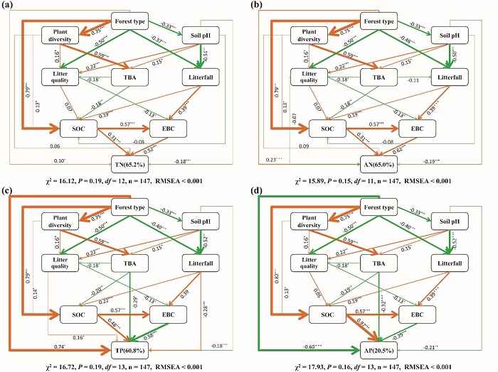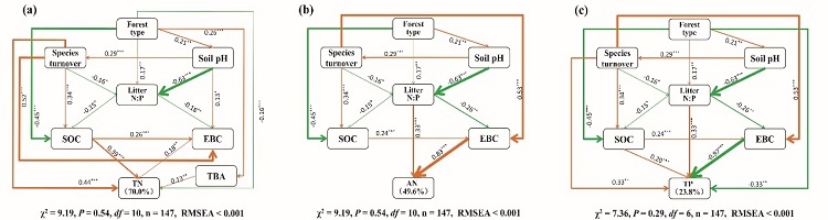 植物-土壤相互作用是生態(tài)系統(tǒng)進(jìn)化的重要驅(qū)動力。已經(jīng)有大量研究報道了關(guān)于土壤養(yǎng)分如何影響植物多樣性的研究。然而,關(guān)于植物對土壤的反饋作用鮮有報道。此外,普遍認(rèn)為高的植物多樣性能夠顯著提高土壤氮、磷有效性。然而,在森林自然演替過程中,植物多樣性與土壤氮、磷有效性并不是成單一的線性關(guān)系。考慮到森林在演替過程中物種組成也發(fā)生著變化(物種周轉(zhuǎn)),這可能也會影響土壤養(yǎng)分的有效性,但卻尚未得到證實。