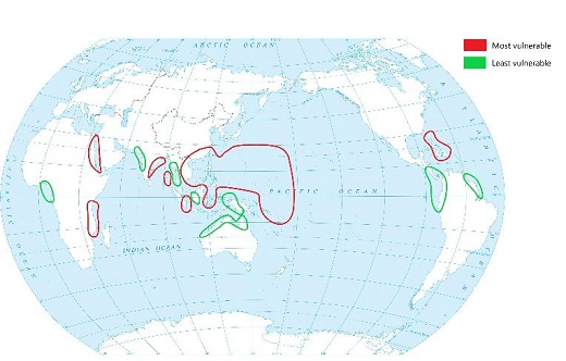 圖.1氣候變化影響下紅樹林全球脆弱區分布