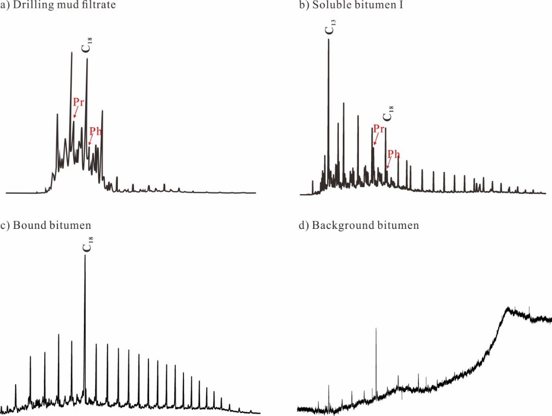 圖1. 典型油基泥漿、巖屑樣品游離態和鍵合態飽和烴的氣相色譜圖