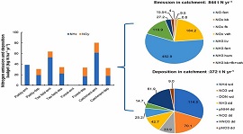 基于此,中國科學院亞熱帶農業生態研究所土壤生態與環境課題組以典型亞熱帶農業小流域-金井河流域為研究對象,監測了流域內三種主要土地利用類型(稻田、森林和茶園)的大氣活性氮干、濕沉降。同時,基于排放因子法,通過流域調查和文獻調研獲取活動數據,編制了流域NH3和NOx排放清單。結果表明流域內大氣活性氮總沉降量為35.9 kg N ha-1 yr-1,其中還原態(NHx)與氧化態(NOy)活性氮分別占49.7%和40.5%。流域內NH3排放與NOx排放速率分別為61.5和18.9 kg N ha-1 yr-1。其中畜禽源和交通源分別是NH3和NOx排放清單的主要排放源。綜合流域內排放與沉降研究可知稻田、森林和茶園的凈大氣活性氮收支分別為+3.7、-36.1和+23.8kg N ha-1 yr-1,而流域尺度為+47.7kg N ha-1 yr-1(+為排放,-為沉降)。這表明森林是重要的大氣活性氮的匯,而亞熱帶農業小流域或是大氣活性氮的源。由于過量的大氣活性氮排放和沉降可能對環境產生不利影響,應增加森林種植面積并采取減排措施以減少農業和交通運輸的氮排放。
