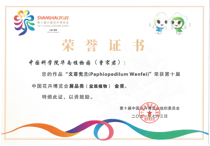 第十屆中國花卉博覽會在上海崇明舉辦。9月15日獲悉,華南植物園曾宋君研究課題送展的兜蘭新品種獲得2個金獎、2個銀獎、5個銅獎、4個優秀獎,是廣東省獲得最多的單位之一。同時該課題有關兜蘭屬植物的研究成果獲得3個科技成果獎,近日均已收到獲獎證書。