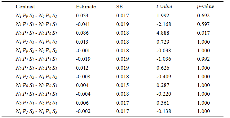 表1. 氮添加和降雨量增加交互效應的事后分析。