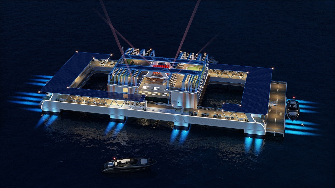 半潛式波浪能深遠(yuǎn)海智能養(yǎng)殖旅游平臺(tái)“閩投1號(hào)”效果圖