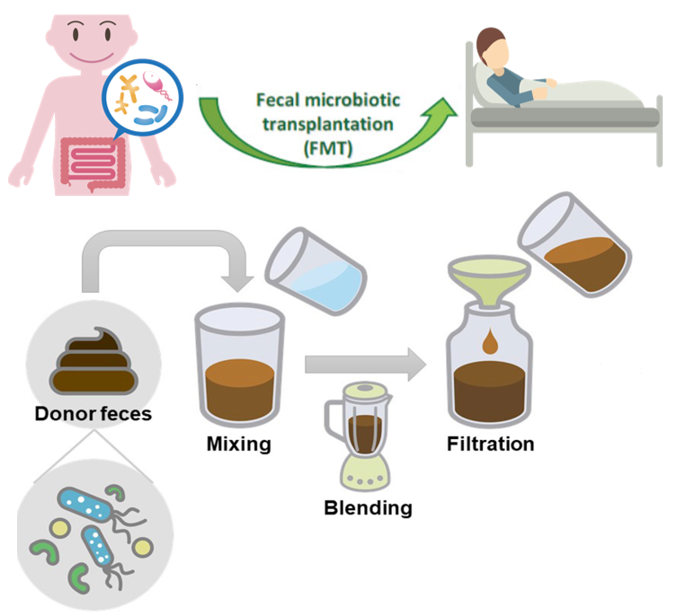 糞便菌群移植(Fecal Microbiota Transplantation)示意圖