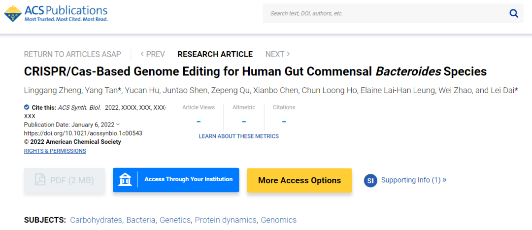 ACS Synthetic Biology | 開發(fā)人體腸道擬桿菌的基因組編輯新工具