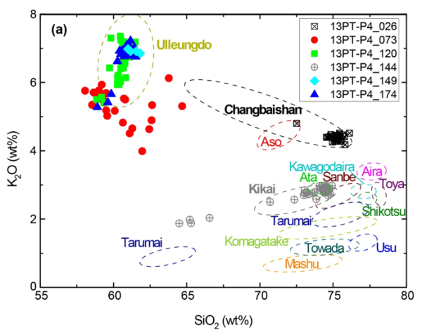 圖1 識別到的日本海火山灰與東亞區內主要火山中心噴發產物的成分對比