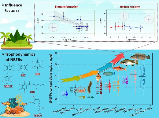 該研究工作通過探討NBFRs的行為和特性,分析了NBFRs在南海熱帶食物網中的營養傳遞動力學,揭示了疏水性和代謝轉化特性對NBFRs富集和放大效應的決定作用,為預測該類型新污染物的水生態風險提供重要的理論依據。
