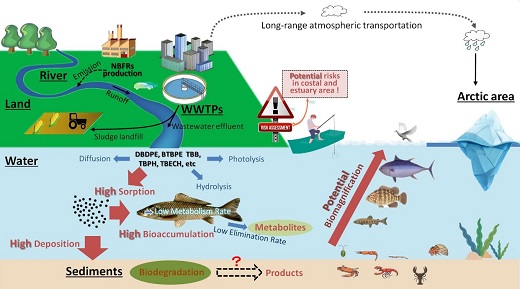圖1 NBFRs在水環境中的行為及特性