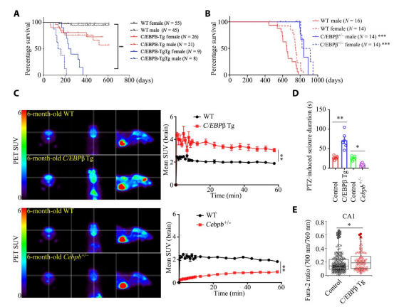 圖1:神經細胞中C/EBPβ升高引起神經興奮,縮短小鼠生命周期