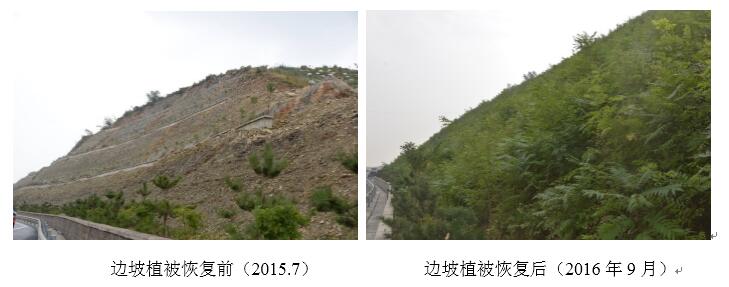 “山區高速公路邊坡安全與生態恢復技術研究”以連接河北邢臺與山西汾陽的邢汾高速公路工程為項目依托,該高速公路主要經過干旱缺水、土壤瘠薄、pH值為堿性的太行山區,東西高差1100多米,開挖后大部分為強風化石質邊坡,要在如此惡劣環境條件下進行邊坡生態恢復難度非常大。