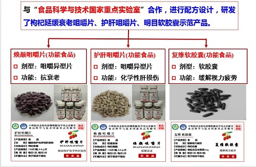 基于枸杞的成分及其功效研究基礎,研發了同步制備枸杞活性物質的新工藝2項,形成了高附加值的保肝、延緩衰老、緩解視力疲勞的功能產品3項,該技術和產品已經轉化至合作企業;研發枸杞玻態產品2項;建立標準操作規程7項、工程化技術方案6項。建立企業標準6項,其中3項獲得寧夏衛生和計劃生育監督局備案。這些產品的研發為枸杞深加工領域豐富了高附加值產品,有巨大的市場潛力。