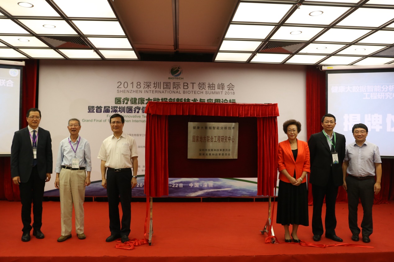 期間,由中國科學院深圳先進技術研究院牽頭的“健康大數據智能分析技術國地聯合工程研究中心”在本次論壇上正式成立,該中心由國家發改委批準建立,主要面向健康醫療大數據方向的前沿科學研究及轉化方向。金小桃、吳以環等領導嘉賓共同為中心成立見證揭牌。