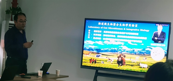 張志剛作了題為“冠狀病毒的前世今生:給人類的警示”的報告,分享了團隊關(guān)于新型冠狀病毒溯源的最新研究進展,還在此基礎(chǔ)上分享了冠狀病毒在人類社會發(fā)生發(fā)展的過程以及團隊在該領(lǐng)域的研究成果。此外,他還分享了利用青藏高原獨有的資源優(yōu)勢開發(fā)挖掘優(yōu)質(zhì)微生物種群的研究進展。報告結(jié)束后,參會人員就張志剛團隊發(fā)現(xiàn)的微生物Akkermansia muciniphila在機體氮沉積方面的作用在畜禽養(yǎng)殖上的應(yīng)用前景作了深入討論和交流。