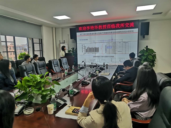 李艷華作了題為“中獸藥現代化研究的思考”的學術報告,介紹了我國中獸藥的發展現狀,強調了我國畜牧生產中建立和完善中獸藥標準的重要性,并分享了團隊在中獸藥有效成分分析技術的優化及研發以紫丁香葉中黃酮類為有效成分新獸藥的研究進展。會后,李艷華教授和與會人員就中藥復方二次開發展開了討論和交流,并對后者在中獸醫領域的發展前景進行了展望。