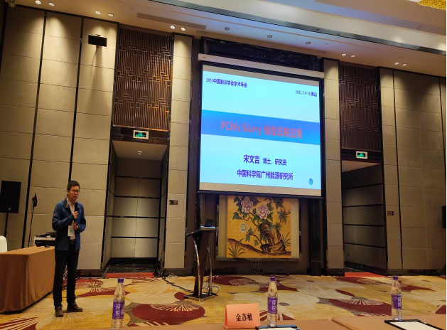 宋文吉研究員的報告題目為《PCM Slurry制備技術及其應用》,指出了不同PCM slurry的應用在當前碳中和背景下的重要意義,介紹了漿態相變材料制備技術,尤其以動態冰漿制備技術為例展開詳細分析,并對過冷水動態冰漿制備技術的關鍵原理和冰蓄冷商業化案例等進行了詳細分析。儲能技術研究室陳明彪博士、胡亞飛博士分別作特邀報告《跨季節蓄冷在恒溫恒濕系統的應用及性能分析》和研究報告《燃氣熱泵系統在過渡季節供生活熱水的實驗研究》,李帥旗、李江峰、田佳垚、杜群等相關研究人員參加了此次會議。
