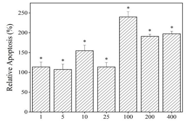 3)有效毒性組分的來源探索:為了進一步探索WSF中毒性化合物的來源信息,分別檢測了WSF組分中的δ13C和14C的相對含量。14C的含量與凋亡有顯著相關,說明誘導毒性的物質來源于非化石源,主要包括生物質排放、生物質燃燒,和二次源的化合物。本實驗中也發現WSF中的K+與凋亡之間有顯著的正相關,考慮到K+為生物質燃燒源的標志物,所以認為本次實驗中誘導凋亡的化合物,主要來自生物質燃燒和二次源。此外,研究中也檢測了WSF中的δ13C 數據,把δ13C 和14C數據一起進行貝葉斯模型分析,可以把污染源分為四種不同的來源,分別為交通源、煤炭燃燒源、C3植物和C4植物排放源。而C4植物燃燒產物,煤炭燃燒產物和交通源排放所產生的污染物的含量與凋亡之間有顯著的線性相關(表1)。 由于在采樣期間屬于C4植物的玉米秸稈燃燒對中國PM2.5的貢獻最大,所以作者認為C4植物中玉米秸稈燃燒對細胞毒性的貢獻較大,而來源于玉米秸稈的PM2.5樣品也發現了其與細胞凋亡之間有濃度劑量效應關系(圖3)。因為大部分交通源排放的產物是不易溶于水的,所以認為篩選出的交通源產物可能來自交通源排放產物產生的二次反應產物。本研究中,由于δ13C存在著同位素分餾的影響,因此貝葉斯模型的結果,可以作為一個輔助證據。由此,我們認為來自于煤炭燃燒、交通源二次污染源和C4植物燃燒所產生的化合物是PM2.5水溶性組分中誘導細胞凋亡的主要來源。