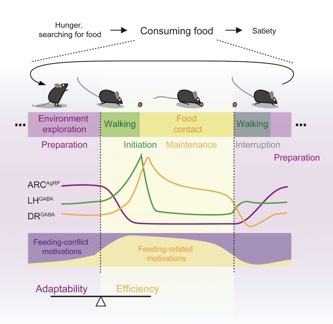 攝食片段的準備、發起與維持分別由ARCAgRP,LHGABA和DRGABA神經元調控