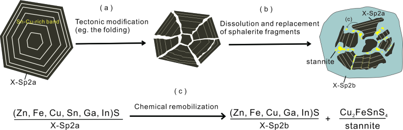 因此,對于貧錫的赤土店礦床,后期構造-流體對原生硫化物礦體的改造是導致銦在該礦床中富集的重要因素之一(圖4)。