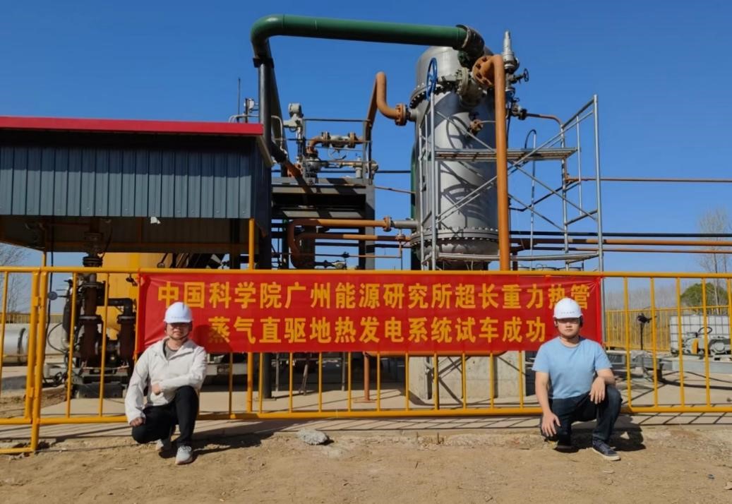 近期,中國科學院廣州能源研究所蔣方明團隊在中科院先導專項課題等支持下,完成了世界首創熱管產出蒸汽直驅汽輪機地熱發電系統的設計,在河北省雄安新區安新縣開展了超長重力熱管蒸氣直驅地熱能發電系統的場地實驗研究,并于3月23日至26日成功進行了72小時發電試車。