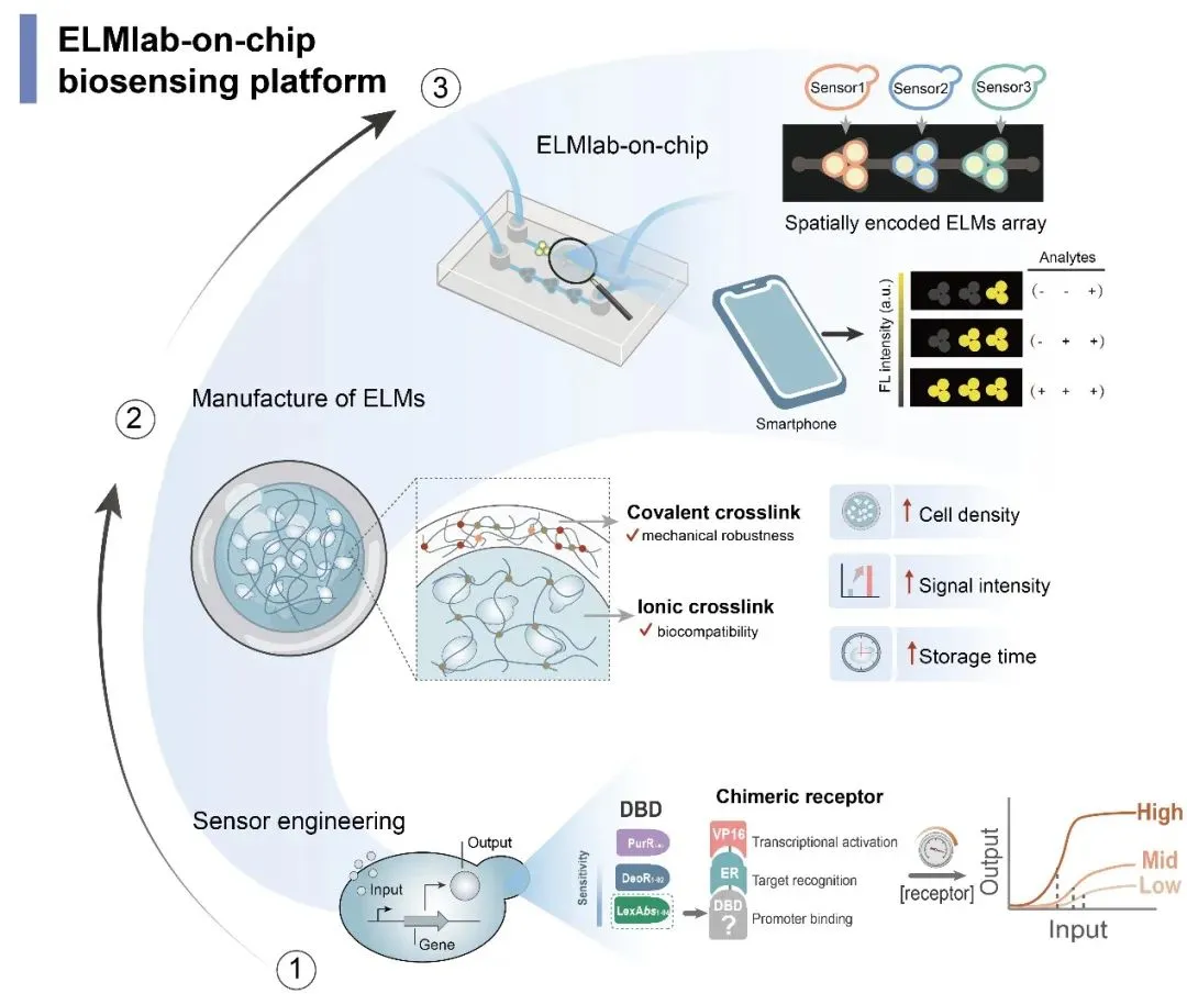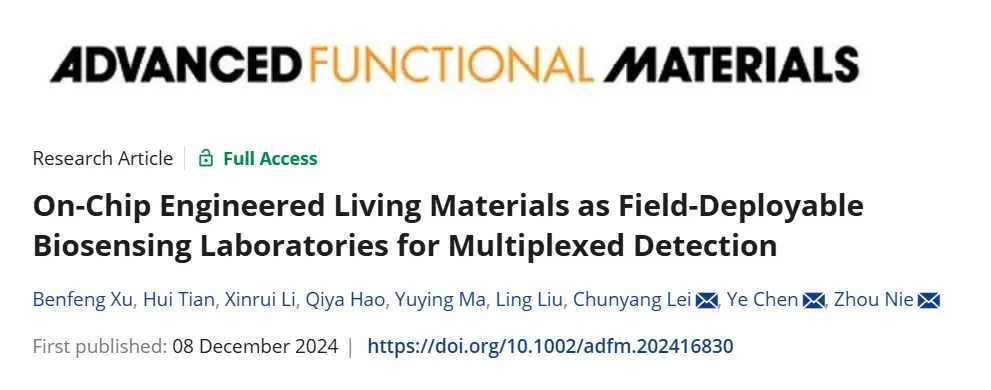 通過與該研究相似的轉錄因子重構結合合成啟動子方法,以及對于轉錄因子表達量、DNA結合結構域及啟動子模塊的精準設計,可以在釀酒酵母及大腸桿菌中對于任意轉錄信號進行優化。基于該方法,陳業團隊與湖南大學的合作成果,以"On-Chip Engineered Living Materials as Field-Deployable Biosensing Laboratories for Multiplexed Detection"為題,已在Advanced Functional Materials期刊上發表,中國科學院大學碩士黎欣睿完成了細胞傳感器的開發。