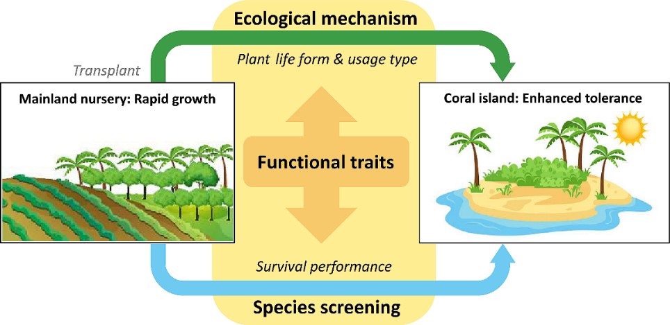 圖1. 基于植物功能性狀的熱帶珊瑚島植物適應機制探討與恢復物種篩選
