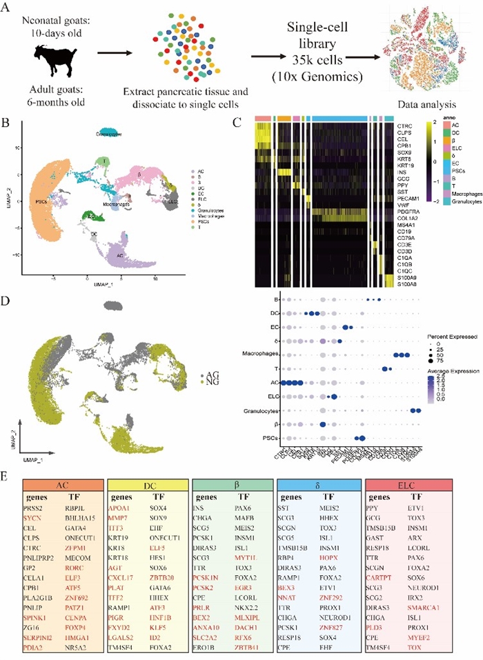 圖 2 新生和成年山羊胰腺單細胞圖譜