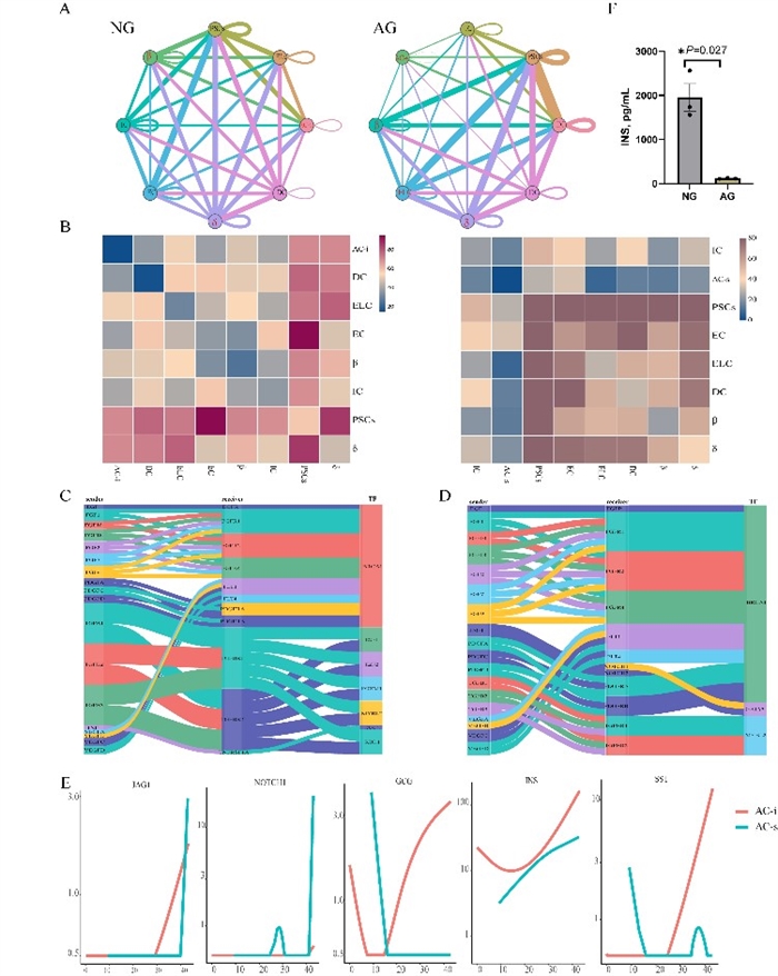 圖 3 新生和成年山羊胰腺細胞互作網(wǎng)絡(luò)