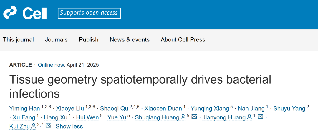 4月21日,中國科學院深圳先進技術研究院定量合成生物學全國重點實驗室研究員黃術強團隊與中國農業大學教授朱奎團隊、北京大學研究員黃建永團隊合作,在國際學術期刊《細胞》發表最新研究:團隊通過跨學科協同創新,從“器官幾何結構特征-細胞力信號轉導-病原菌感染”互作機制出發,首次揭示組織形態特征調控細菌感染的新規律。同時團隊提出了基于力敏感離子通道蛋白Piezo1的抗菌策略,為抗菌藥物提質增效、降低毒副作用和指導合理用藥提供了潛在方案,具有重要的臨床應用前景。