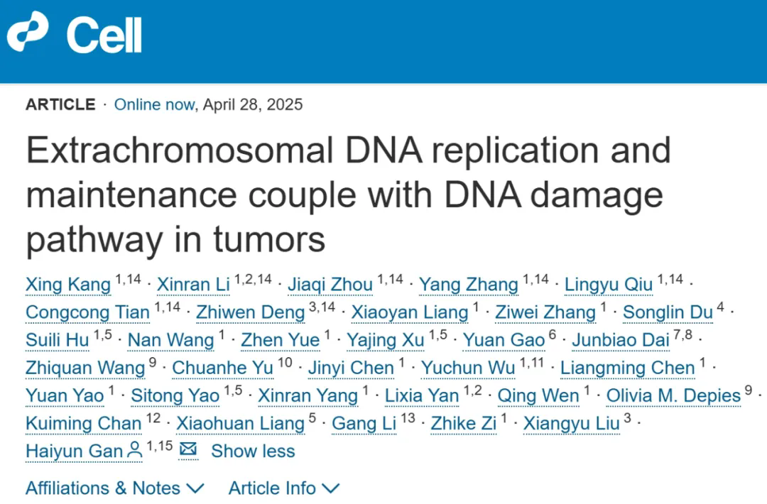 4月28日,中國科學院深圳先進技術研究院定量合成生物學全國重點實驗室甘海云團隊在國際學術期刊《細胞》上發表最新研究成果,團隊首次揭示了ecDNA在腫瘤細胞中維持生存的關鍵機制,為理解ecDNA對腫瘤發生發展的作用機制提供了新視角,也為開發靶向ecDNA的抗腫瘤治療策略提供了重要理論依據。深圳先進院為該研究第一單位。