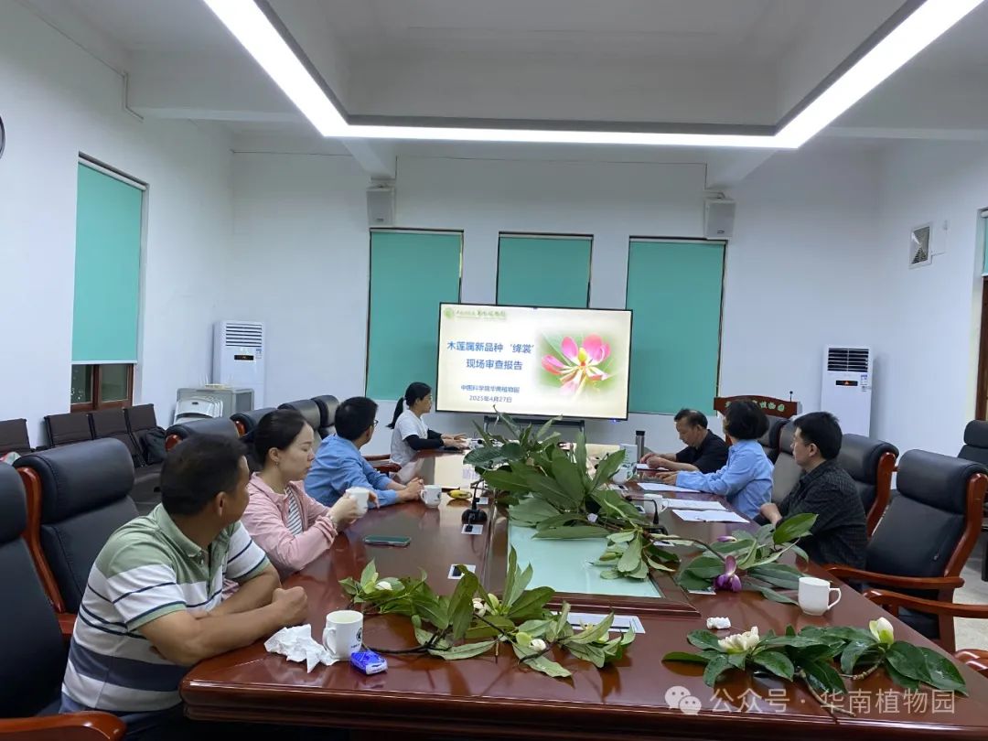 4月27日,國家林業和草原局植物新品種保護辦公室組織專家對華南植物園申請的木蓮屬新品種‘絳裳’進行了現場審查。審查專家為中國科學院昆明植物研究所龔洵研究員和海南大學王亞玲研究員。華南植物園園藝中心寧祖林副主任等熱情接待了專家組一行。
