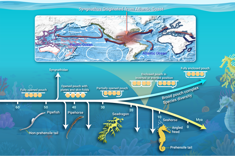 本研究整合基因組、性狀和分布數據,揭示了海龍科類群在不同生態與地理背景下的全球擴散與性狀創新演化,為理解海洋魚類的適應性進化提供了新視角。