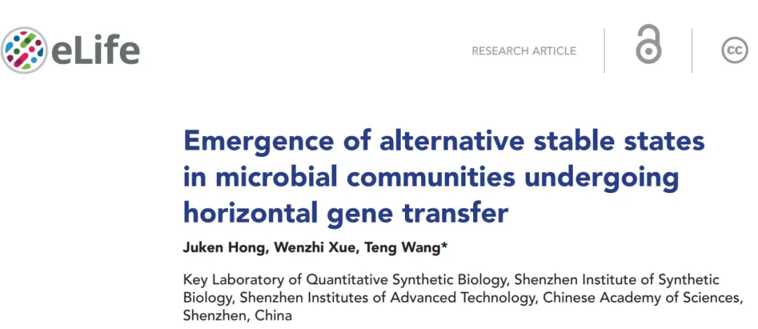 3月3日,王騰課題組在eLife上發表了題為“Emergence of alternative stable states in microbial communities undergoing horizontal gene transfer”的研究論文。該工作基于多尺度微生物生態學模型,系統揭示了復雜微生物生態系統中多穩態的涌現機制。?