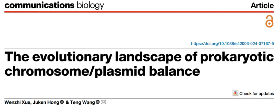 此前不久,王騰團隊在Communications Biology上發表了題為“The evolutionary landscape of prokaryotic chromosome/plasmid balance”的研究論文。該工作解析了原核生物染色體/質粒平衡的多層次選擇機制,為質粒的演化動力提出了全新的理論框架。