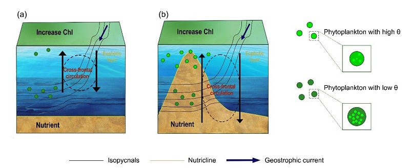 海洋亞中尺度過程(水平尺度1–10公里)作為海洋能量串級與物質輸運的關鍵環節,一般被認為在全球生物地球化學循環中發揮著重要作用。一些科學家認為亞中尺度過程的強垂向速度使它們對浮游植物生長具有深遠的影響,另一些科學家則認為這些過程的淺穿透及其與營養鹽需求的季節分相極大地降低了其向上輸送營養鹽的效率,限制了其在浮游植物生長的作用。因此,全球尺度上亞中尺度過程如何影響浮游植物是目前一個廣受關注又備受爭議的前沿熱點話題。