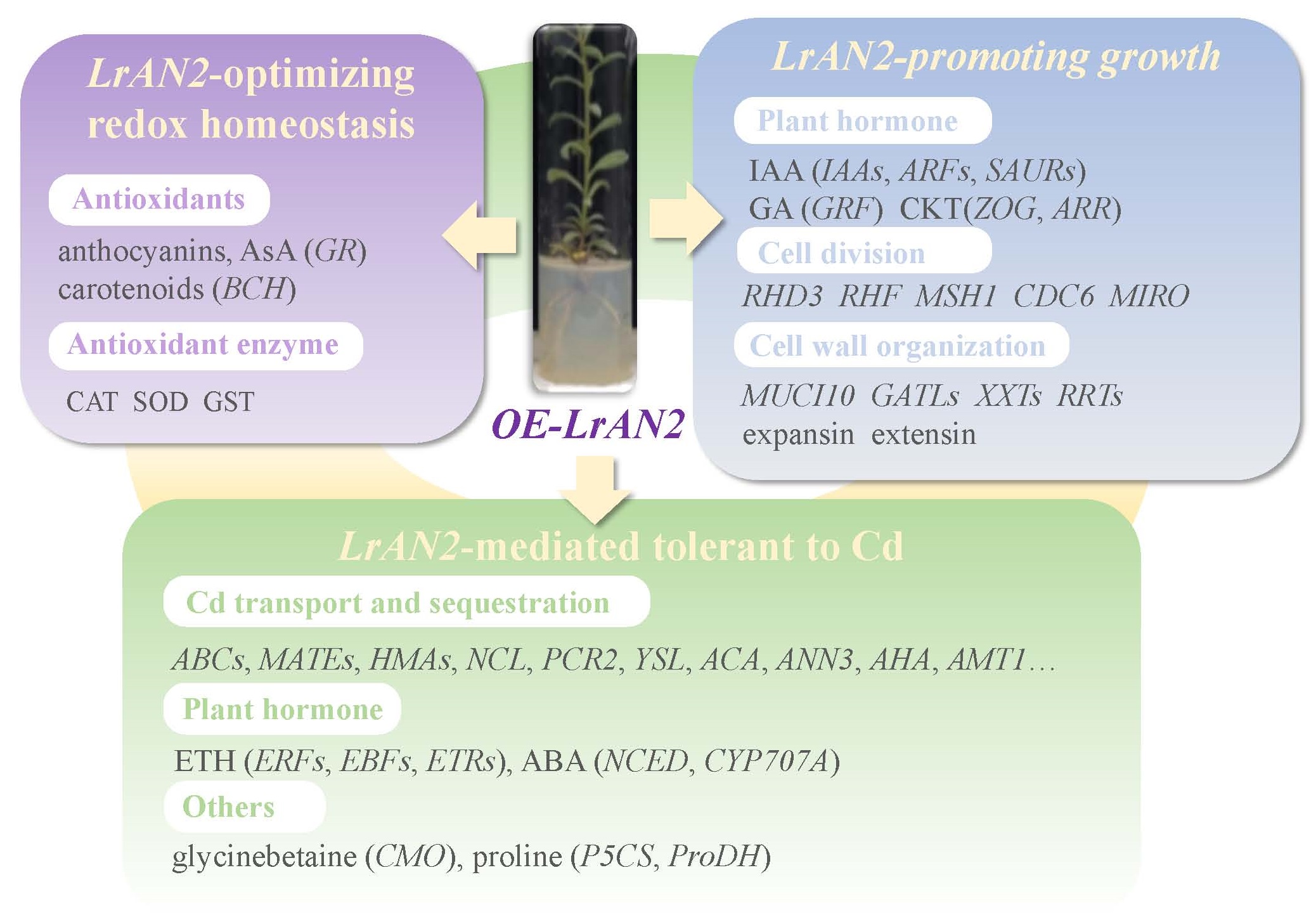 圖1. LrAN2增強黑果枸杞幼苗耐鎘脅迫推測模式圖
