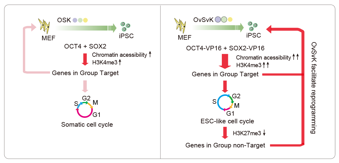 綜上所述,該研究闡明了OvSvK快速重編程機制,一方面融合VP16促進OS直接下游基因的表達;另一方面通過改變細胞周期結構、影響組蛋白H3K27me3對非OS直接下游基因表達的調控。該研究為理解細胞周期影響表觀遺傳修飾,進而促進細胞命運轉變提供了新視角,也為深入理解重編程機制提供了理論支持。